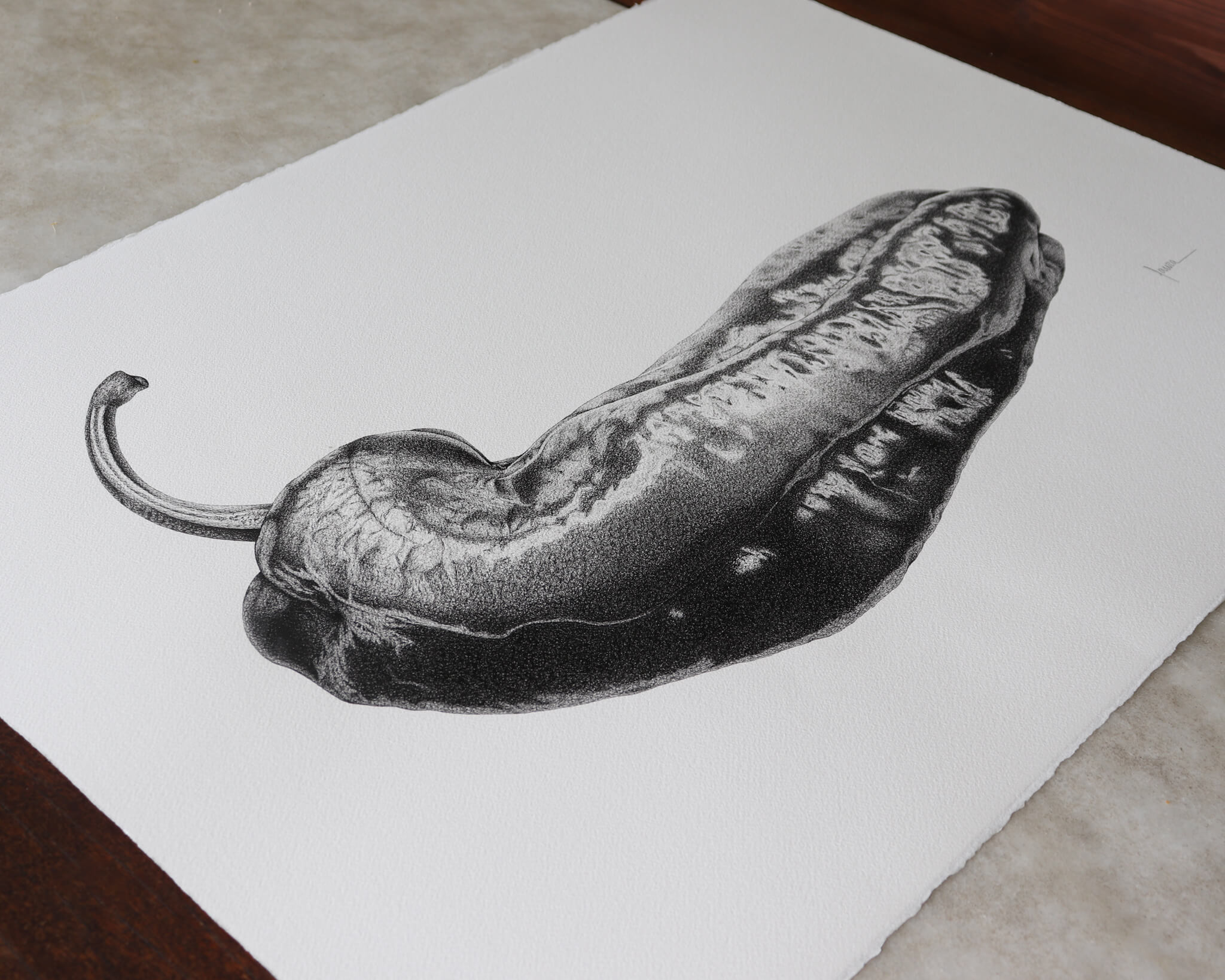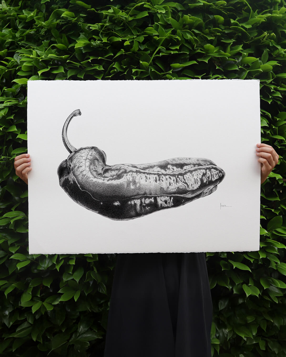 Un día erguinme, vin os pementos no froiteiro, e tíveno claro. Esta obra é un brindis por Mercedes e por todas as Mercedes do mundo, por quen coida da terra e das persoas, polas mans con terra nas uñas, pola xente xenerosa e as noites de verán. Por poder seguir celebrando a vida arredor da mesa moitos anos máis.